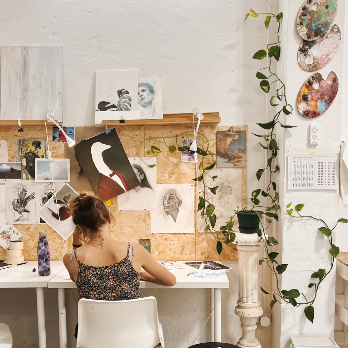 Academia La Gràcia se encuentra situada en el barrio de Gracia, en Barcelona. Desde 2020 nos dedicamos a enseñar de manera individual, personalizada y flexible a personas de todas las edades y niveles. Dibujo para principiantes, acuarela, teoría del color, pintura al óleo, ilustración enfocada al tatuaje, pintura abstracta, ilustración infantil... ¡A tu ritmo!